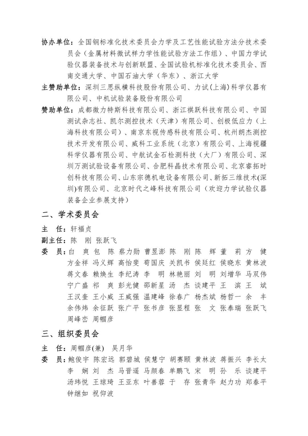 全国钢标准化技术委员会力学及工艺性能试验方法分技术委员会(金属材料微试样力学性能试验方法工作组)、中国力学试验 仪器装备技术与创新联盟、全国试验机标准化技术委员会、西南交通大学、中国石油大学(华东)、浙江大学